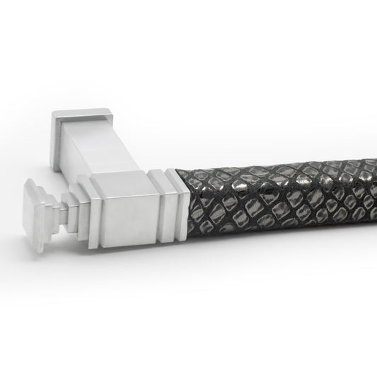 Elegant Leather Handles for Kitchen Cabinets Pull: Eleganza with Satin Finish in Grey Patent Snake Leather for Kitchen and Bath-PL122