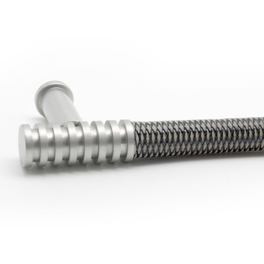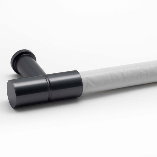 Angelo Cabinet Pull - Satin Finish with Bardo Grey-Black Leather Wrap | Di Lusso Hardware - PL131