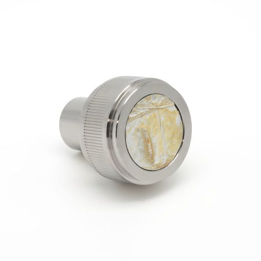 Retro Knob with Insert - Silver Brass and Shiny Cobra Leather | Di Lusso Hardware | Kn111