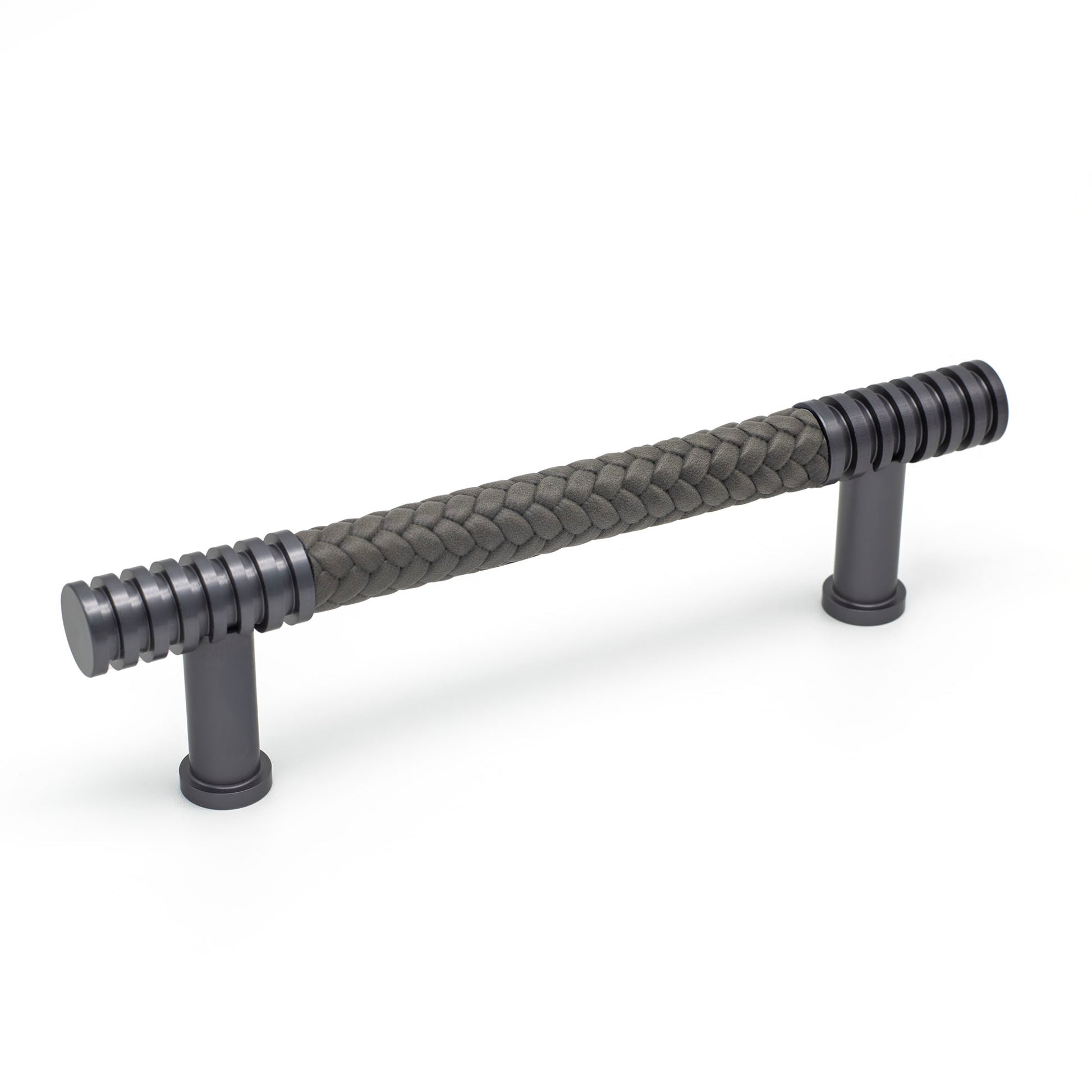 Angelo Cabinet Pull - Gunmetal Finish with Grey Woven Leather Wrap | Di Lusso Hardware - PL132